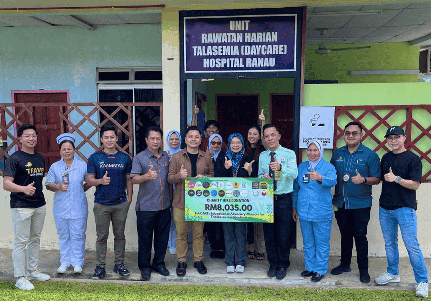 RANAU: 20 Oktober 2025 – Program Charity Hike Ranau 2025 mencipta impak positif apabila berjaya mengumpul dana sebanyak RM8,035 bagi menyokong misi Advokasi Pendidikan untuk Pelajar Talasemia (EduCARE) Ranau. Dana tersebut akan disalurkan kepada Unit Rawatan Harian Talasemia, Hospital Ranau untuk pembelian keperluan pendidikan pesakit talasemia.