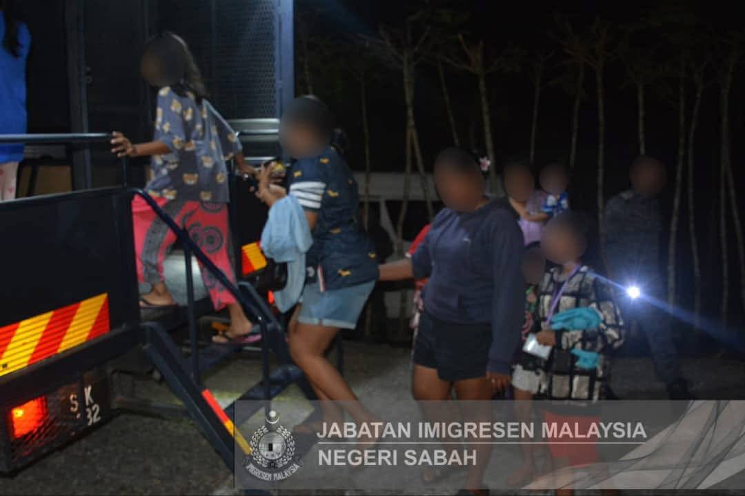 Mereka kini ditahan di Depot Imigresen Papar untuk siasatan lanjut di bawah Seksyen 6(1)(c) dan Seksyen 15(1)(c) Akta Imigresen 1959/63 serta Peraturan 39(b) Peraturan-Peraturan Imigresen 1963.